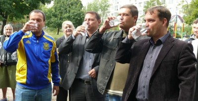 У щільно забудованому житлом мікрорайоні «Березняки» додалося життєдайної зони: у дворі довжелезних висотних будинків по проспекту Тичини, 26-28 і на їхньому перетині з вулицею Березняківською відновлено роботу громадського бювету питної води.