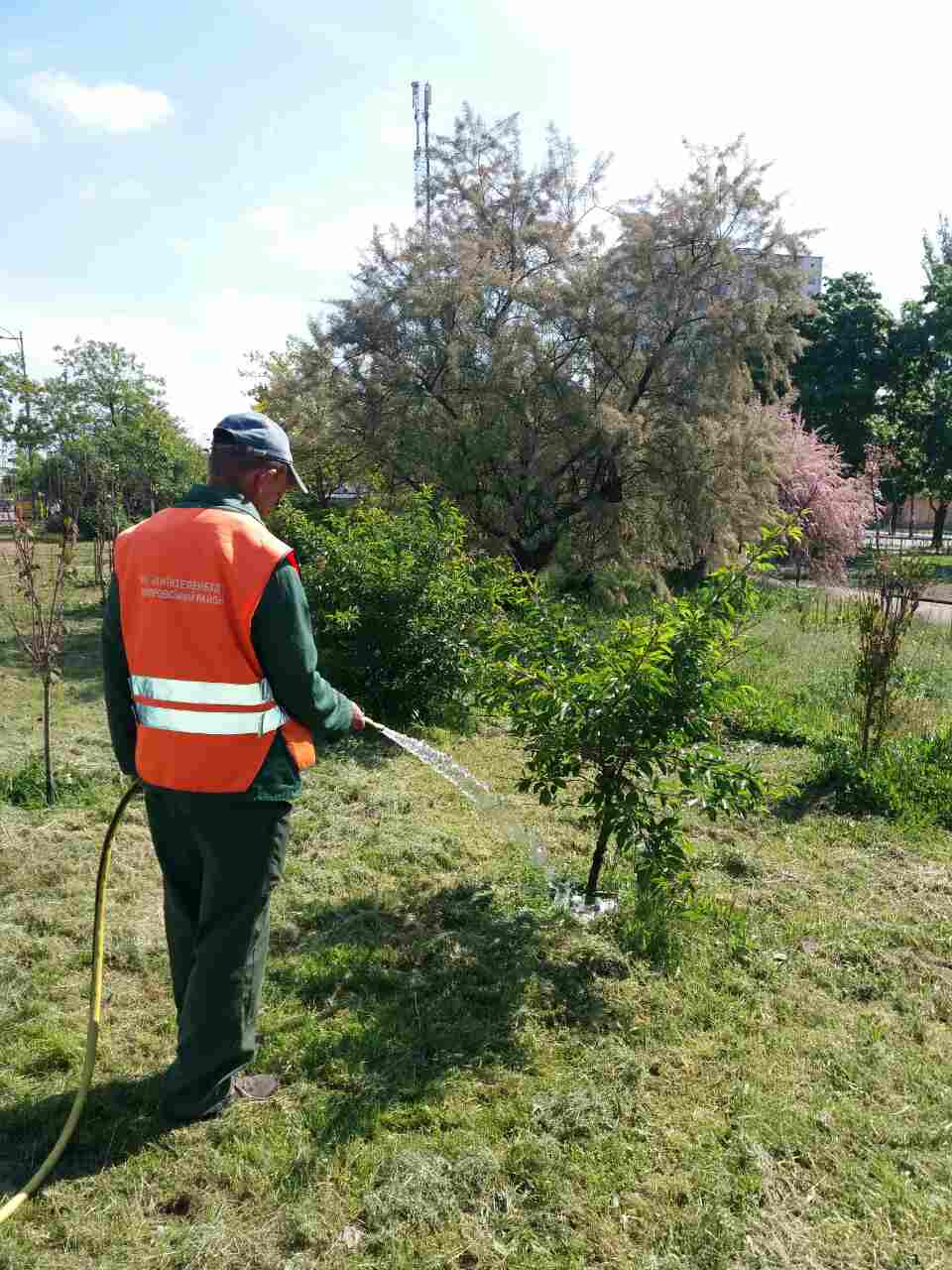 Весняні погожі дні спонукають до прогулянок на свіжому повітрі. Дорослих та малечу ваблять зелені оази району – парки та сквери. Озеленювачі, доглядаючи за зеленими насадженнями, опікуються правильний ростом та розвитком рослин. Задля цього, серед іншого, здійснюють полив дерев та кущів. Сьогодні такі роботи вже виконали на проспекті Соборності, у сквері І. Миколайчука та сквері по вул. Празькій.