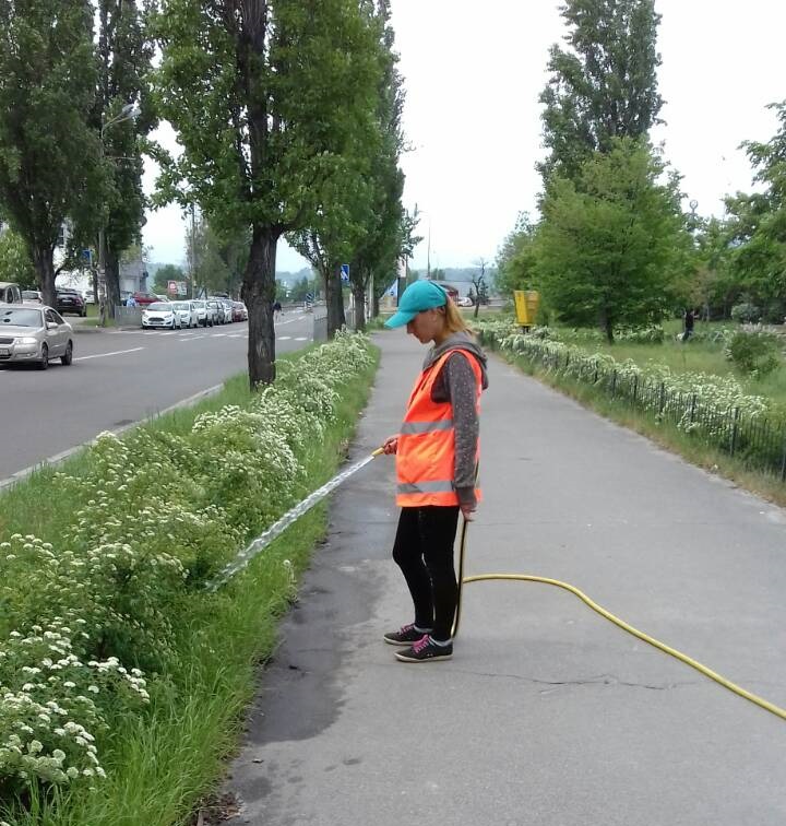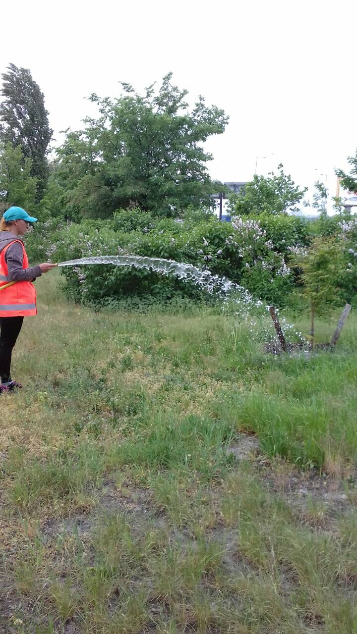 Озеленювачі районі продовжують роботи з наведення ладу та порядку на балансових територіях. Дбаючи про зелені насадження виконують роботи з поливу в парку культури ат відпочинк "Перемога" та вздовж бульвару І. Миколайчука.
