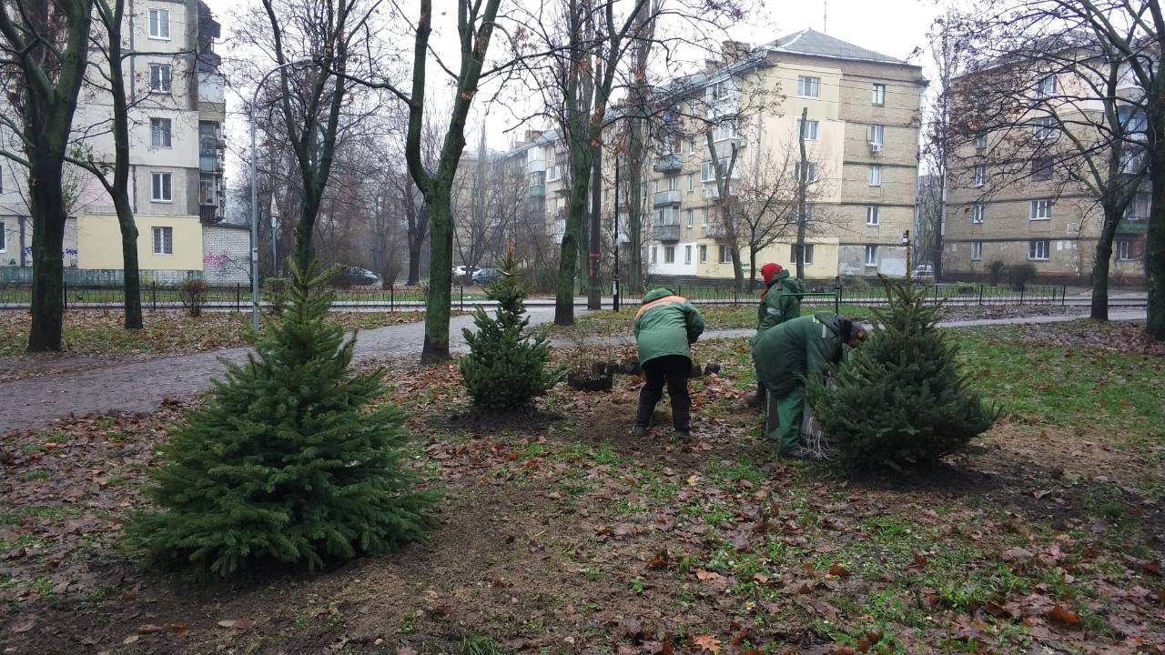 Працівники районного Комунального підприємства по утриманню зелених насадженьвикористовують кожен сприятливий день для висадки дерев. Так, сьогодні озеленювачі висадили 3 ялини звичайні у сквері "Мікросад" та 25 дерев сосни гімалайської у парку вздовж Броварського проспекту.