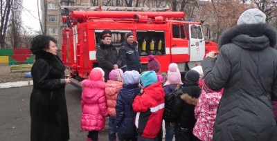 Після теоретичної частини усі учасники навчального процесу відпрацювали план евакуації, після чого рятувальники продемонстрували дітям пожежно-рятувальну техніку та показали, як ліквідувати вогонь.