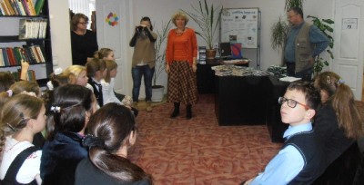 Зовсім нещодавно ми організовували подібну зустріч з Олександром Есауловим, автором фантастично – пригодницьких романів та повістей, дитячих детективів. Але охочих побачитися з прозаїком сучасності виявилося більше. Так на прямий ефір з Олександром Юрієвичем потрапили 9 грудня 2014 року учні 5 – го та 6 – го класів гімназії №191 ім. П.Г.Тичини. Завітавши на гостини до хакера, діти уявно помандрували сторінками написаних книг. Для декого вони були незнайомими, а для декого - добре відомими, бо багато хто з присутніх читав твори письменника.